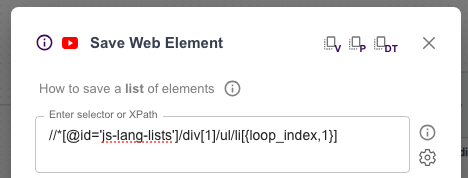 To iterate over a list of incrementing XPath selectors, use the same syntax with loop\_index, as explained here: [#how-to-use-loop-index-syntax-to-save-lists-of-public-data](https://docs.zerowork.io/using-building-blocks/start-repeat/standard-loop#how-to-use-loop-index-syntax-to-save-lists-of-public-data "mention"). Example below.