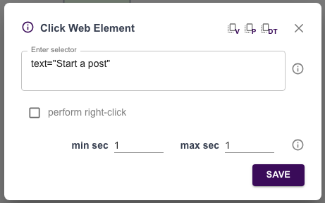 For example, assume you want to start a post on LinkedIn, and the button on LinkedIn is called "Start a post".