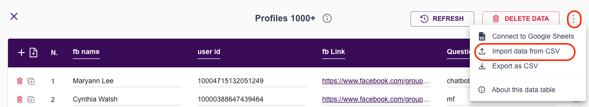 Import Data from CSV